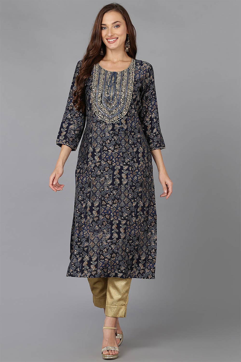 This Blue Cotton Blend Printed Straight Kurti is a timeless choice for any occasion. The intricate prints add a touch of sophistication to the ensemble, while the comfortable rayon fabric ensures effortless elegance and ease throughout the day.