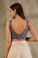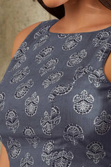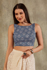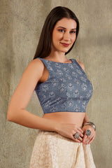 Blue Cotton Printed Sleeveless Blouse