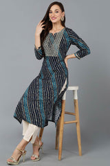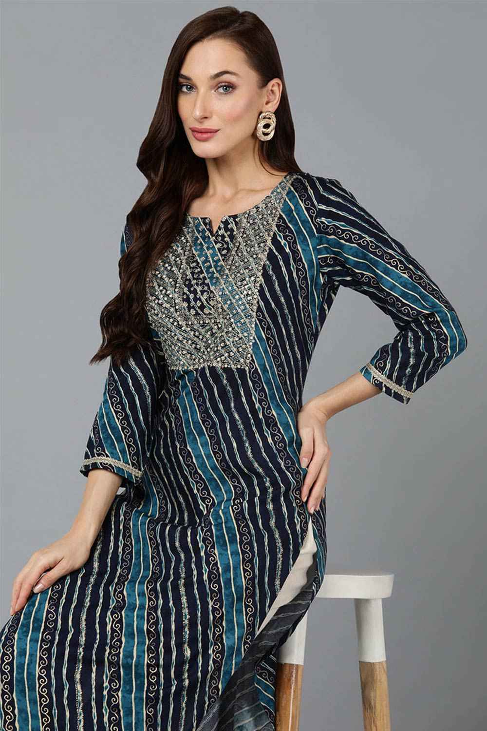 This Blue Cotton Printed Straight Kurti is a timeless choice for any occasion. The intricate prints add a touch of sophistication to the ensemble, while the comfortable rayon fabric ensures effortless elegance and ease throughout the day.