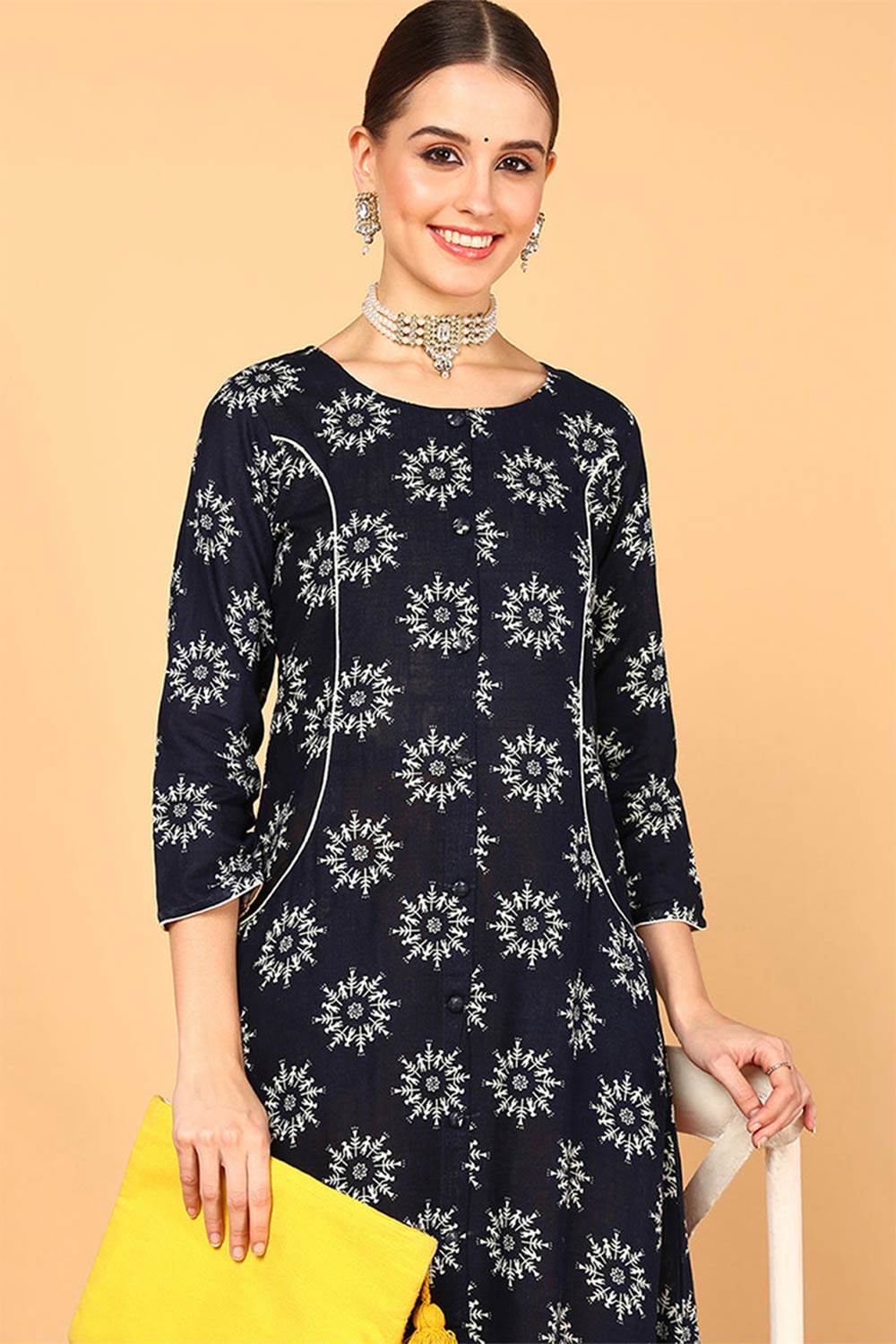 This Blue Cotton Round Neck Kurti is a timeless choice for any occasion. The intricate prints add a touch of sophistication to the ensemble, while the comfortable rayon fabric ensures effortless elegance and ease throughout the day.