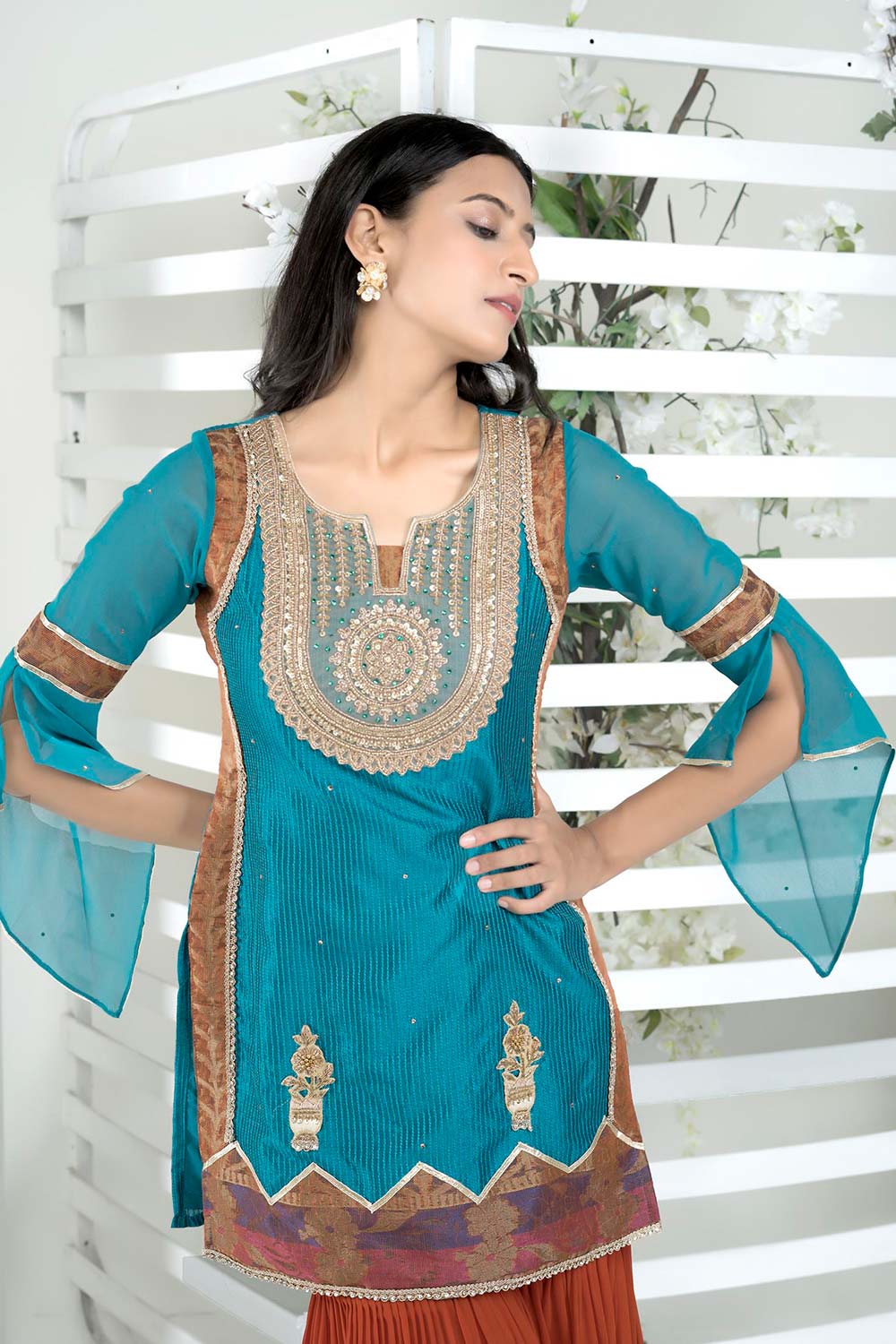 The Blue Embroidered Art Silk Straight Cut Kurti is an exquisite blend of elegance and contemporary style. Crafted from luxurious art silk, this Kurti features a soft sheen that elevates its overall appeal. The vibrant blue shade is eye-catching, making it ideal for both festive occasions and everyday wear.