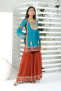 The Blue Embroidered Art Silk Straight Cut Kurti Sharara Set is a stunning ensemble that blends traditional charm with modern elegance. The straight-cut Kurti, made from luxurious art silk, features intricate embroidery that enhances its overall allure, making it perfect for festive occasions or special events.