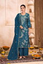 Blue Floral Printed Modal Chanderi Straight Cut Suit Set