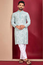 Blue Geometric Chickankari Rayon Men's Kurta Set