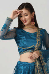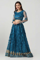 Blue Net Embroidered Work Lehenga Choli