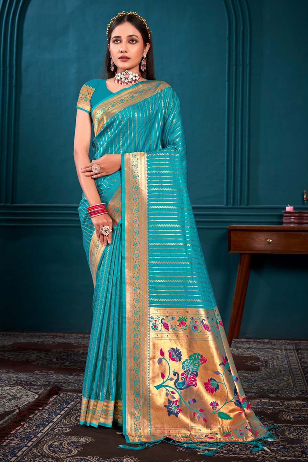 • Blouse Fabric: Paithani Silk