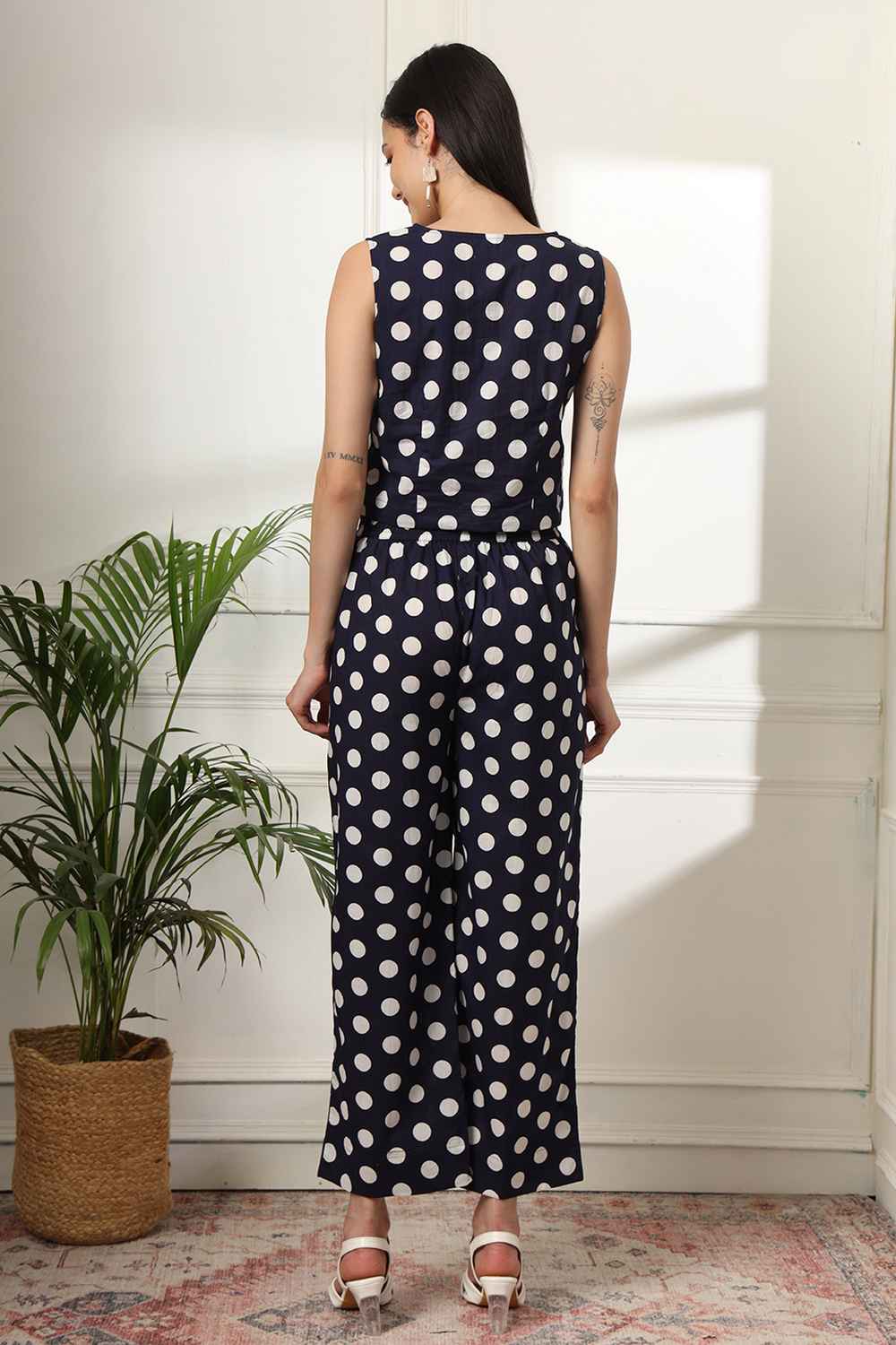 Grab attention with ease with our Blue Polka dot Print Cotton Co-Ord Set,the ultimate in coordinated chic. Crafted from good quality of Cotton this set is designed for comfort and style.Featuring a sleek Polka dot Print and ,itƒ??s perfect for creating an on-trend, put-together look.Be it a brunch outing, a casual day at work or Casual,this co-ord set fits any setting. Pair it with chunky sneakers and minimal jewelry for a cool vibe, or pair it with heels and bold accessories.