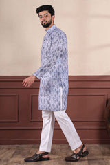 Dress him in elegance with our Men's Kurta Sets a classic Kurta Set designed for timeless style. Crafted from soft Linen it offers a comfortable fit for all-day wear. The intricate Printed adds a traditional touch to this outfit. Perfect for Festivewear, this Kurta Set is a versatile choice for any festive or formal occasion. Pair it with white churidar pants and traditional juttis for a complete ethnic outfit. Make every moment special with the charm of Kurta Set