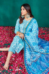 Indigo Blue Cotton Floral Printed Straight Kurti