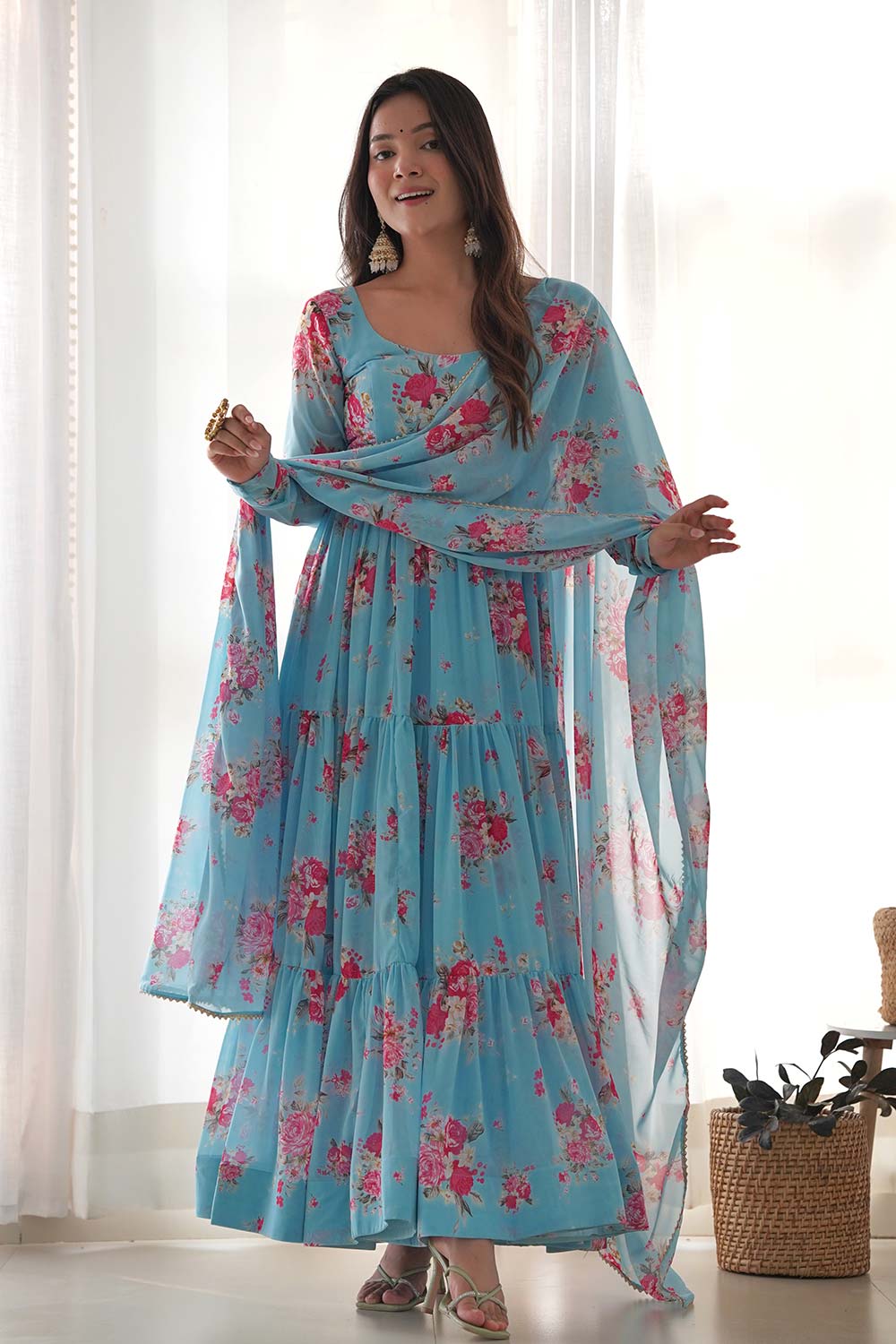 Step into effortless style with our Gown crafted for the modern woman who cherishes their Special occasion. Made from soft Georgette it keeps you comfortable all day long. The Woven on the Printed design lends a touch of sophistication to your outfit. Perfect for Partywear this Gown is a must-have for versatile styling options. Style it with minimalistic accessories and flats for a casual look or jewelry and heels for special events