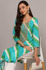 This Blue Rayon Embroidered Round Neck Kurti is a timeless choice for any occasion. The intricate prints add a touch of sophistication to the ensemble, while the comfortable rayon fabric ensures effortless elegance and ease throughout the day.