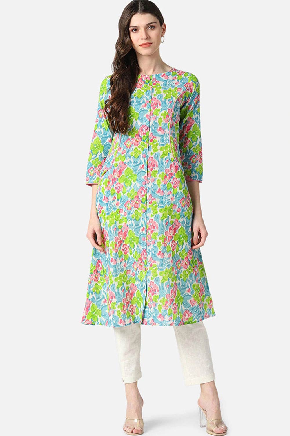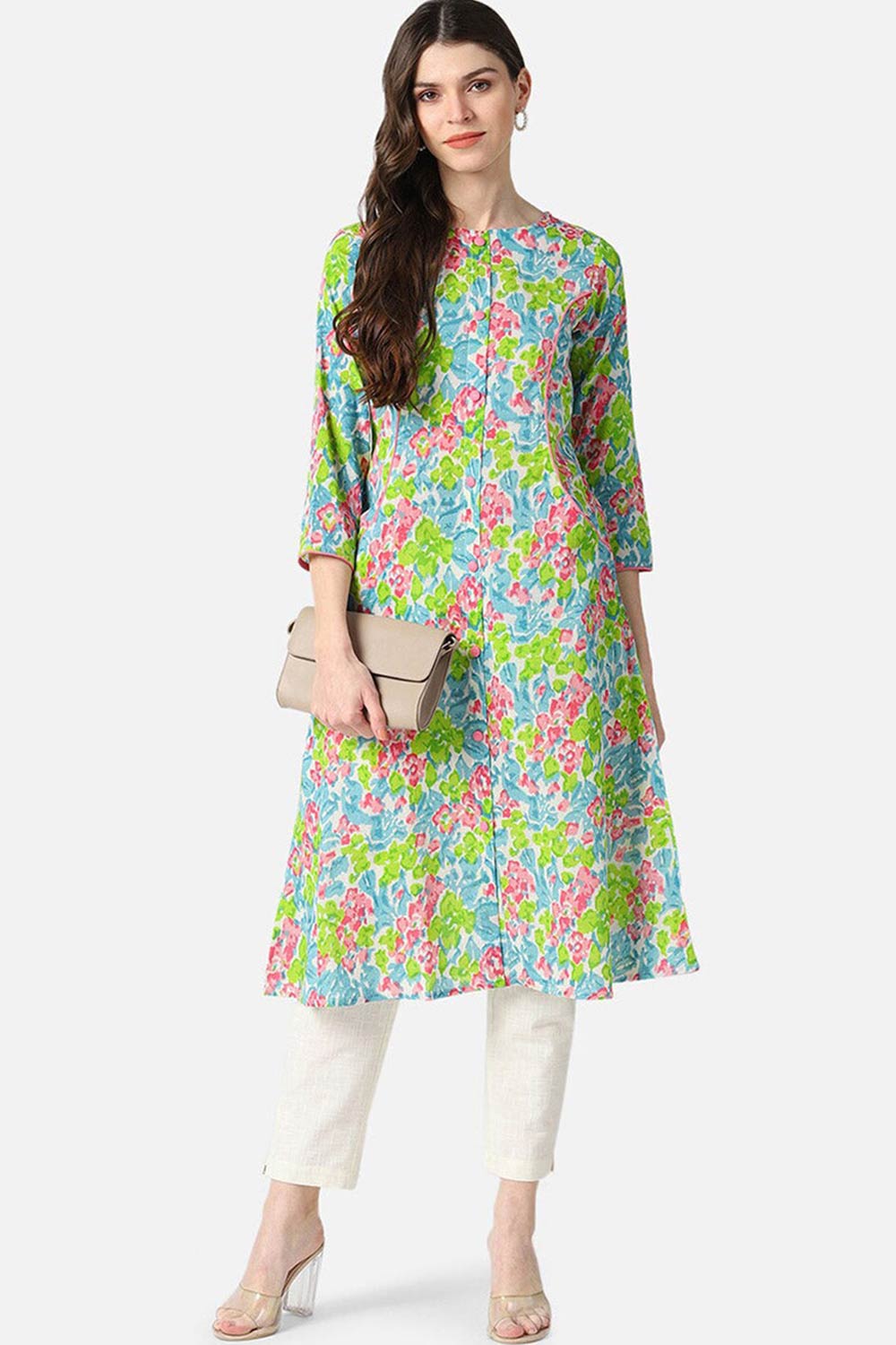 This blue Rayon Floral Flared Fit Kurti is a timeless choice for any occasion. The intricate prints add a touch of sophistication to the ensemble, while the comfortable rayon fabric ensures effortless elegance and ease throughout the day.