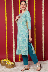 This Blue Rayon Floral Print Round Neck Kurti is a timeless choice for any occasion. The intricate prints add a touch of sophistication to the ensemble, while the comfortable rayon fabric ensures effortless elegance and ease throughout the day.