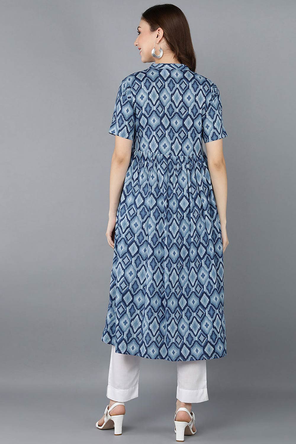 Blue Rayon Printed Flared Fit Kurti