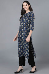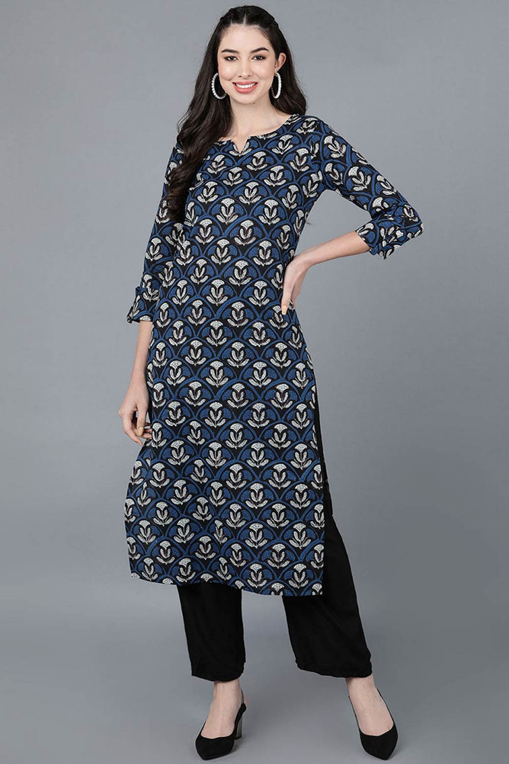 This Blue Rayon Round Neck Kurti is a timeless choice for any occasion. The intricate prints add a touch of sophistication to the ensemble, while the comfortable rayon fabric ensures effortless elegance and ease throughout the day.