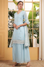 Blue Sequin with Embroidered Georgette Sharara Suit Set