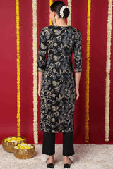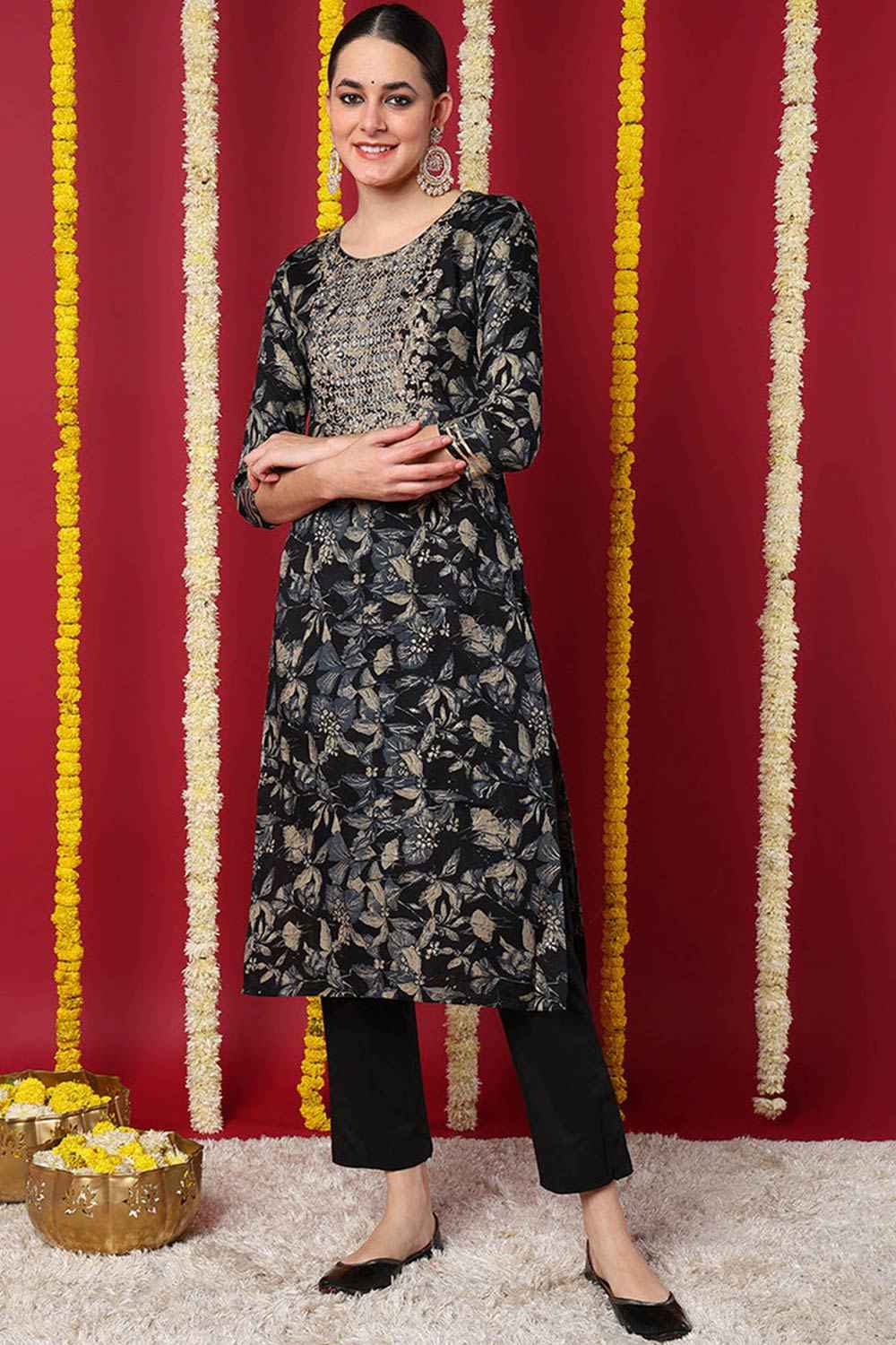 This Blue Silk Blend Floral Print Round Neck Kurti is a timeless choice for any occasion. The intricate prints add a touch of sophistication to the ensemble, while the comfortable rayon fabric ensures effortless elegance and ease throughout the day.