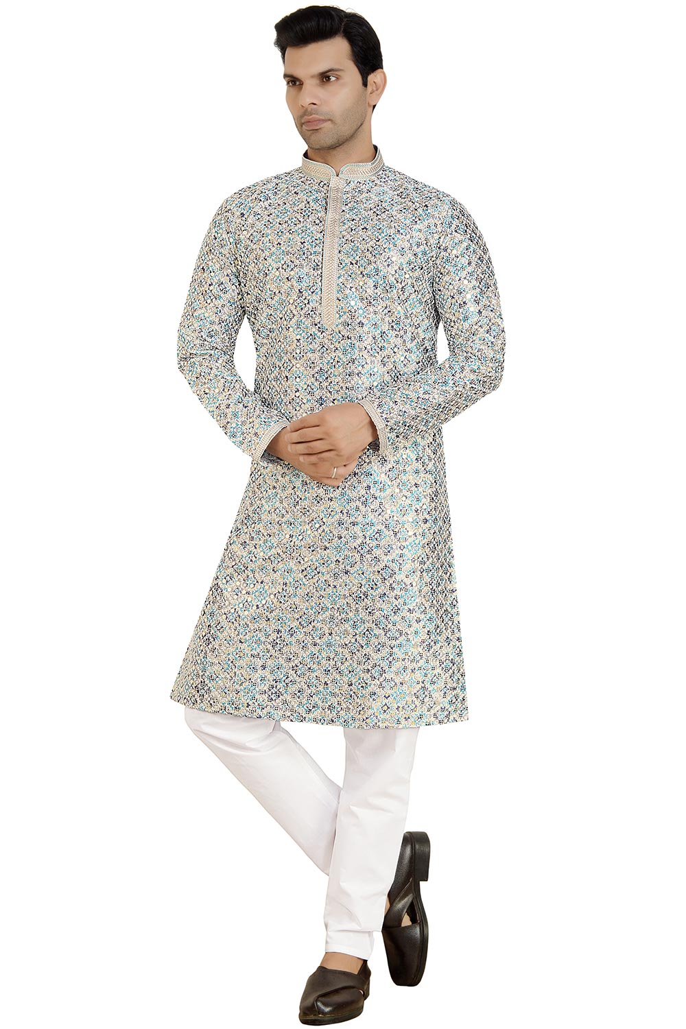 Blue Silk Mirror Sequin Embroidered Kurti Pant