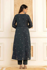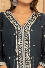 Blue Solid Embroidered Pure Cotton Kurti Pant Set