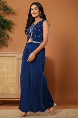Grab attention with ease with our Blue Thread Work Silk Co-Ord Set,the ultimate in coordinated chic. Crafted from good quality of Silk this set is designed for comfort and style.Featuring a sleek and Thread Work,itƒ??s perfect for creating an on-trend, put-together look.Be it a brunch outing, a casual day at work or Festivewear,this co-ord set fits any setting. Pair it with chunky sneakers and minimal jewelry for a cool vibe, or pair it with heels and bold accessories.