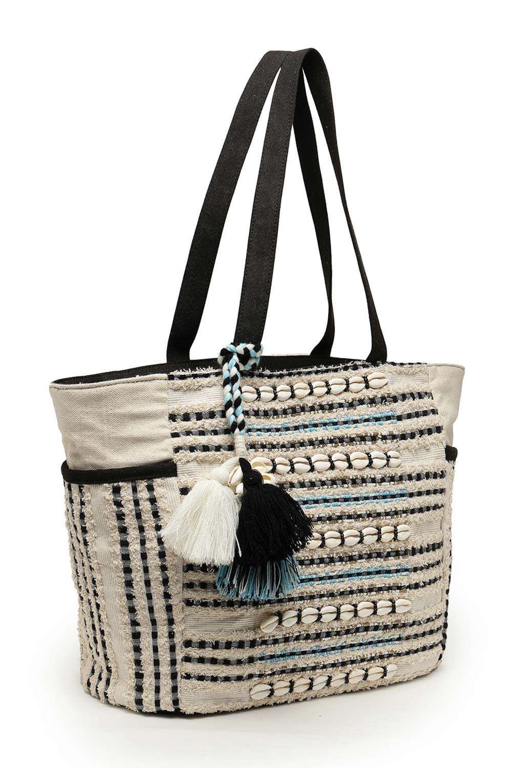 Boho Beige And Black Striped Cotton Jacquard Tote Bag