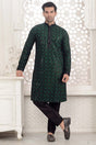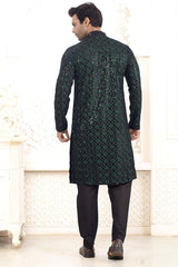 Bottle Green Cotton Sequins Embroidered Kurta Pajama Set
