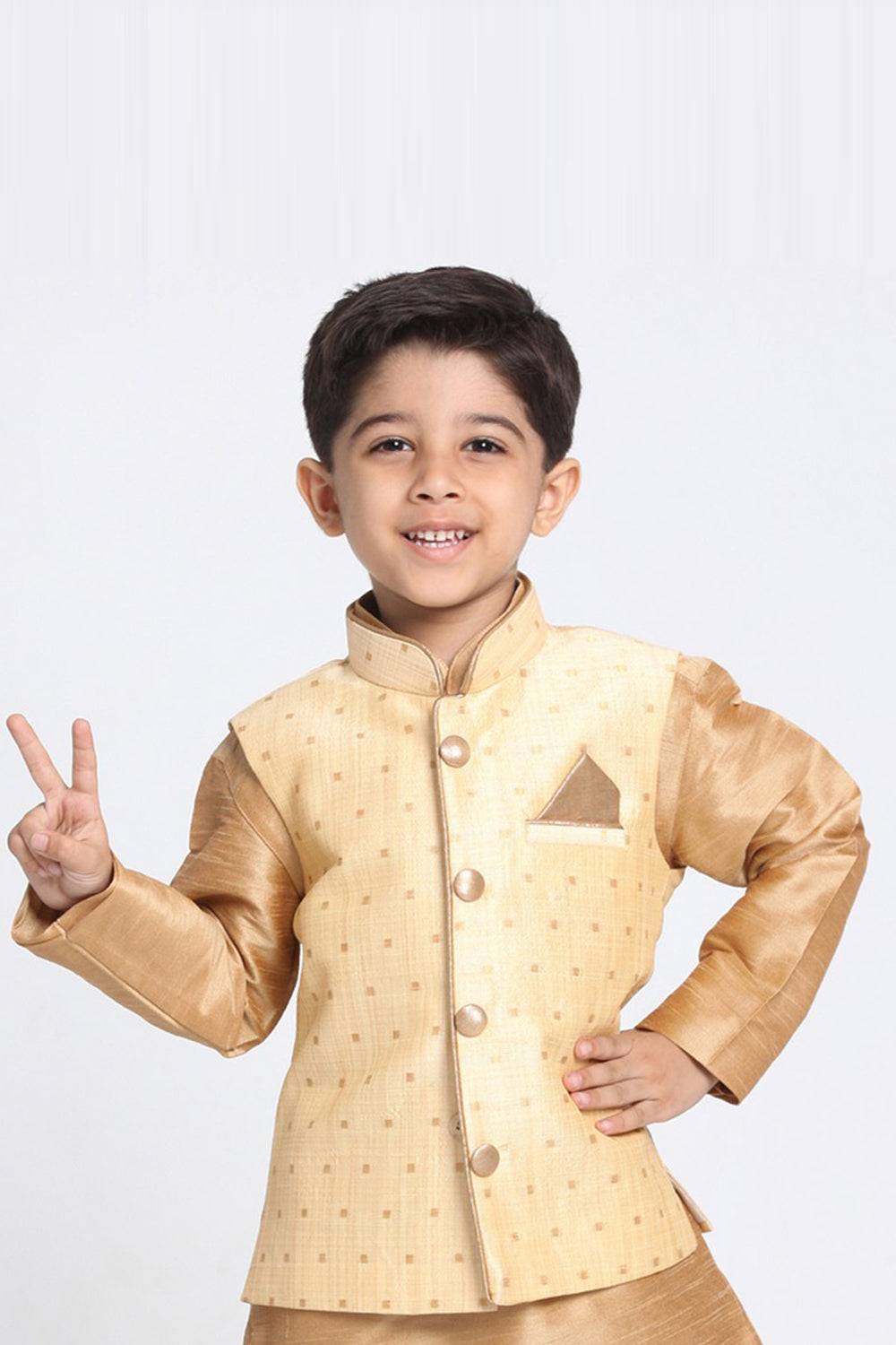Boy's Cotton Art Silk Nehru Jacket in Gold - 6-7 Years