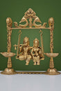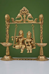 Brass Radha Krishna Swing Parrot With Oil Lamp
