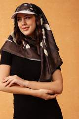 This charming Brown Printed Silk Scarf , adorned with a playful print, is the perfect blend of elegance and fun. Its silky texture and vibrant hues make it an ideal accessory for adding a pop of color to any outfit.