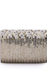 Coffer Champagne And White Floral Embellished Faux Silk Clutch