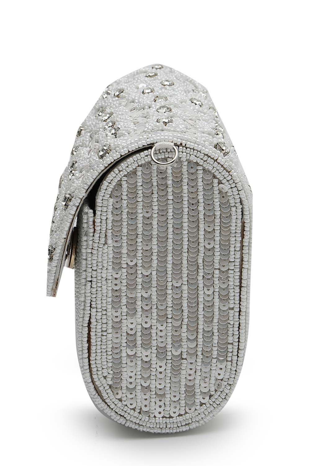 Coffer Silver And White Floral Embellished Faux Silk Clutch