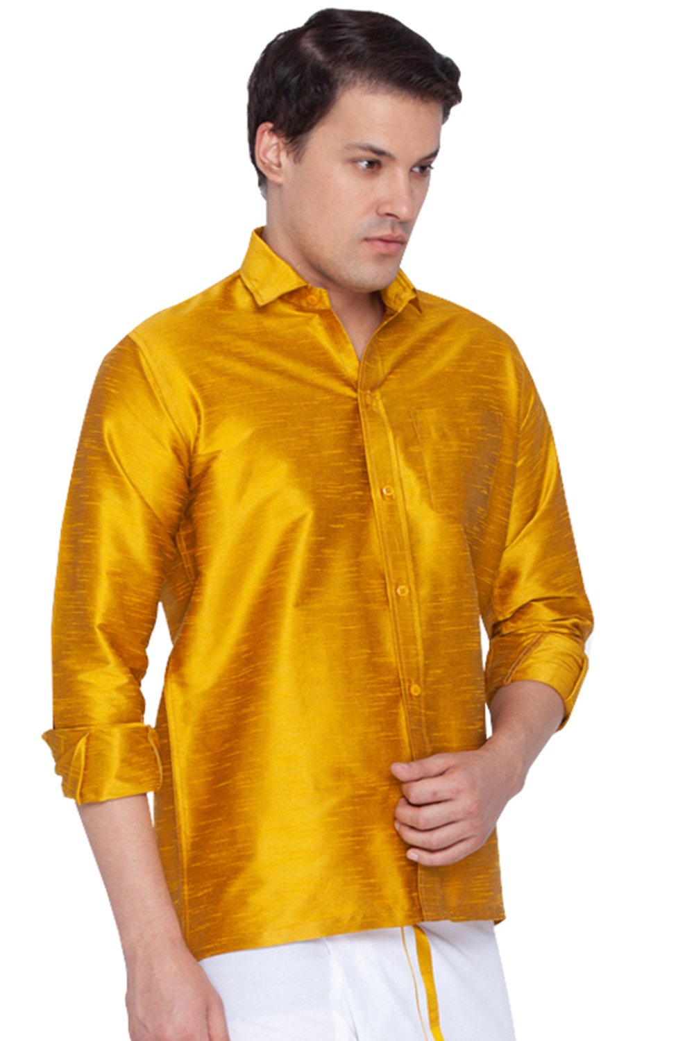 Men's Cotton Silk Blend Solid Shirt In Mustard