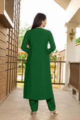 Dark Green Hand Embroidery Art Silk A Line Pants Kurti Set