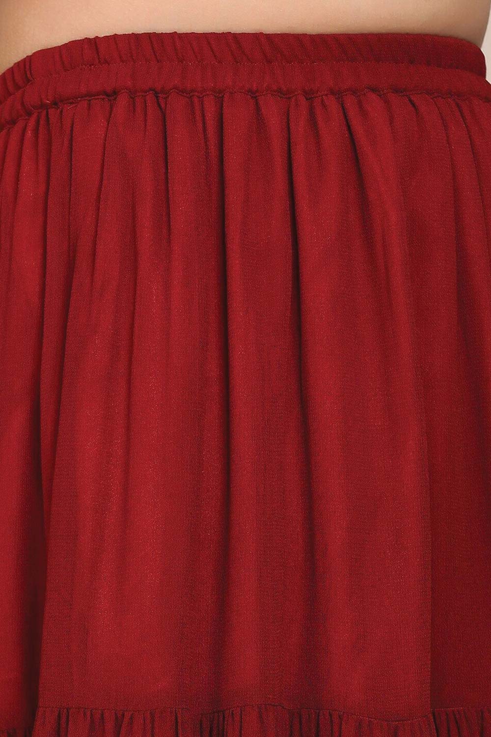 Girl's Maroon Floral Embroidered Sequined Kurti With Skirt And With Dupatta