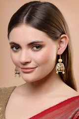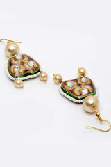 Gold And White Gold-Plated Kundan And Pearls Drop Earring