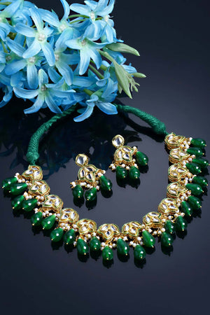 Green And Cream Gold-Plated Kundan And Pearls Jewelry Set