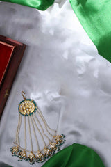 Green And Cream Maang Tikka Head Jeweler With Kundan And Pearls