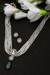 Green And Cream Necklace With Earring Jeweler Set Kundan And American Diamonds