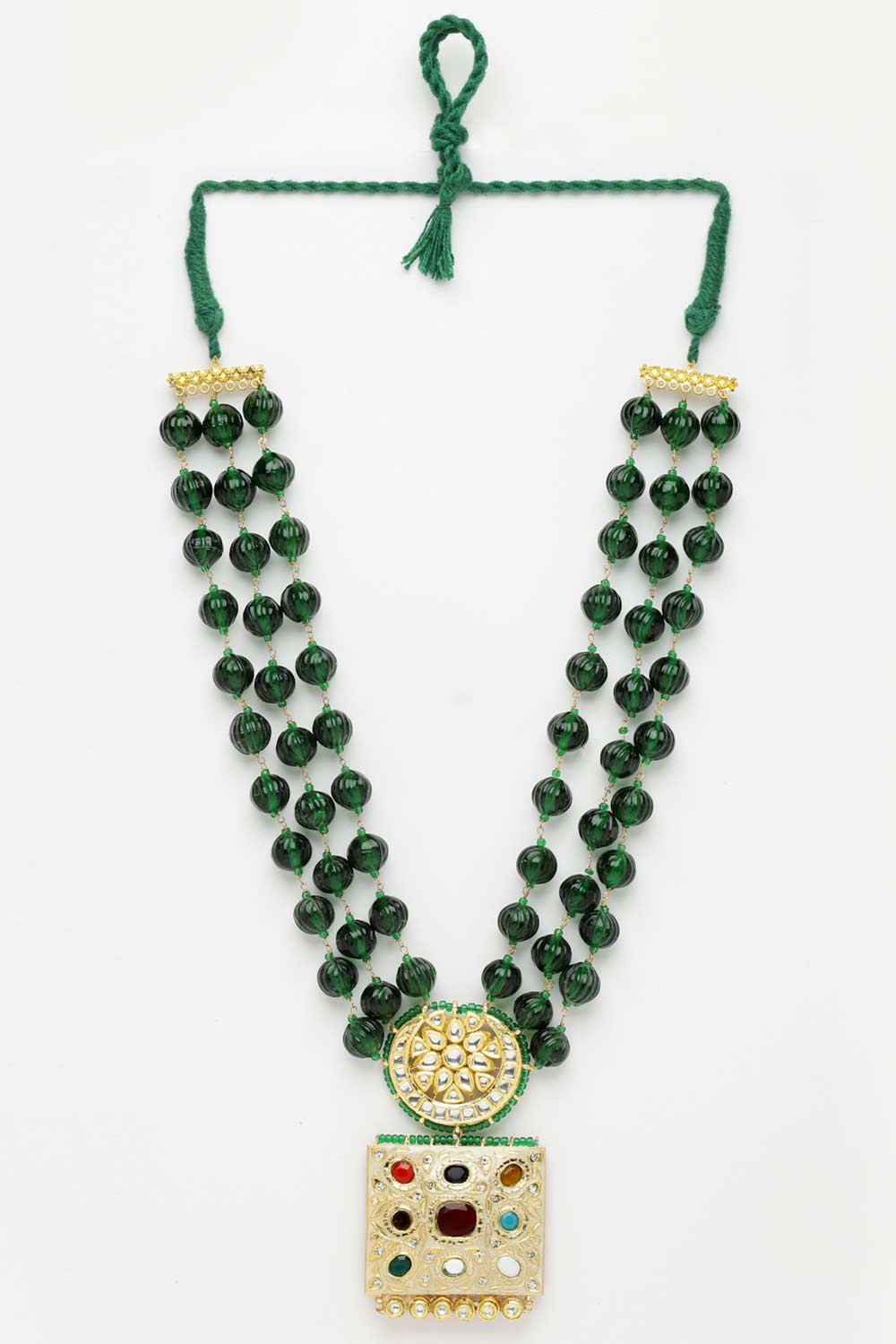 Green & Maroon Haar Necklace With Kundan & Pearl