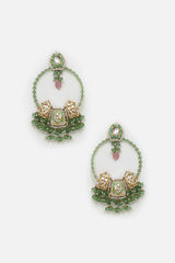 Green And Peach Drop Earring With Kundan And Pearls