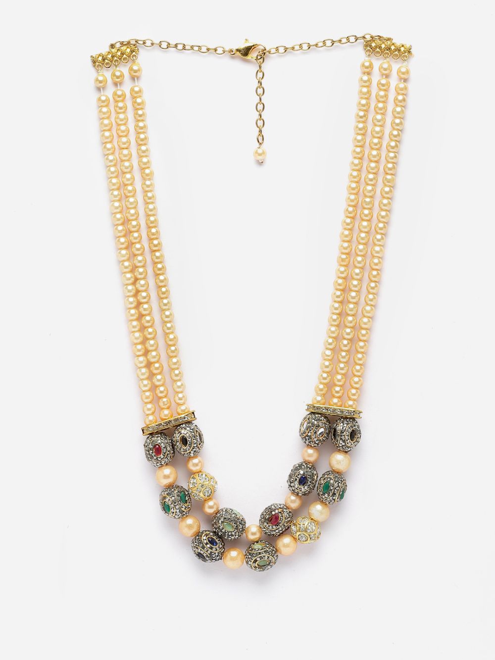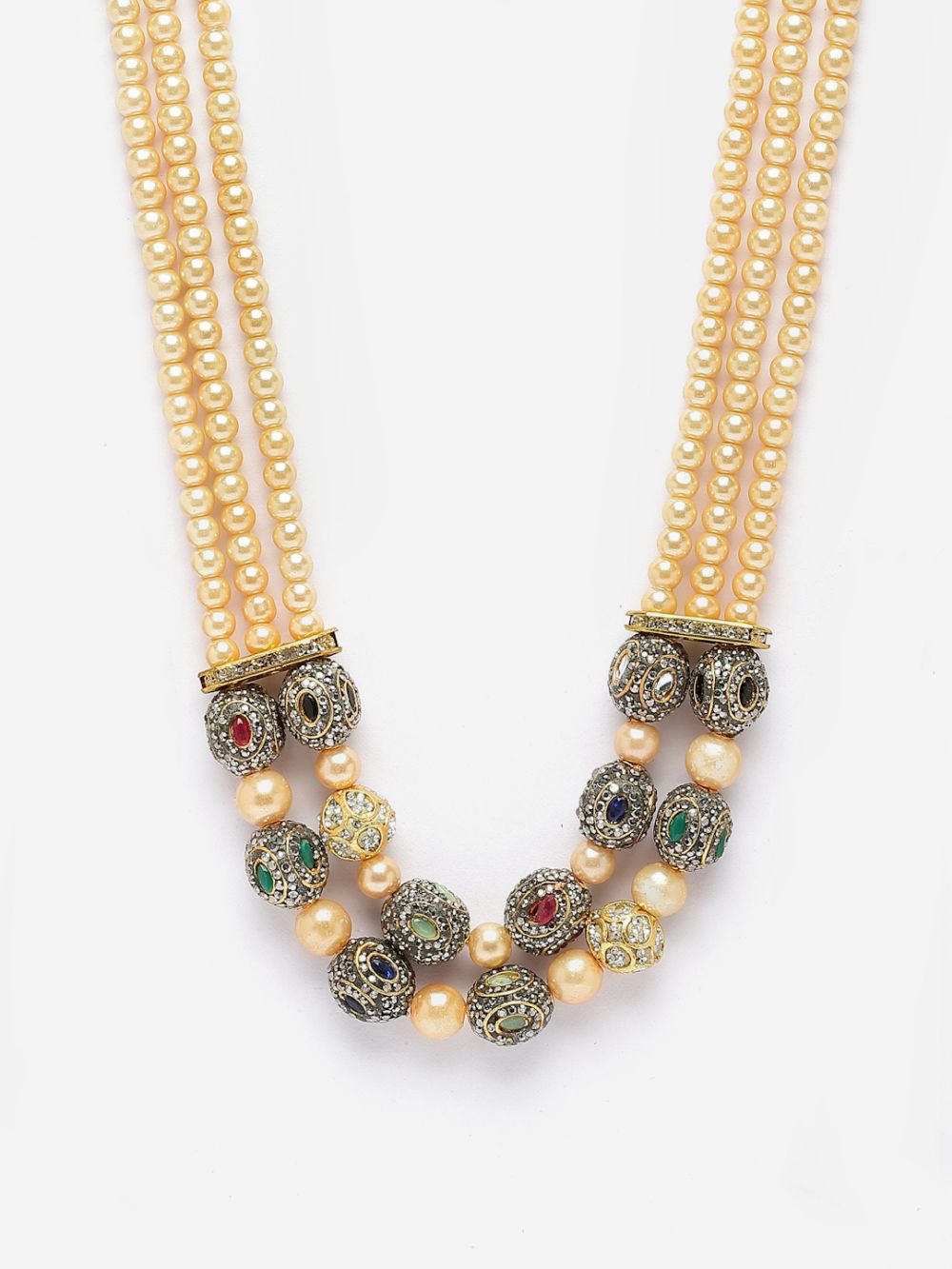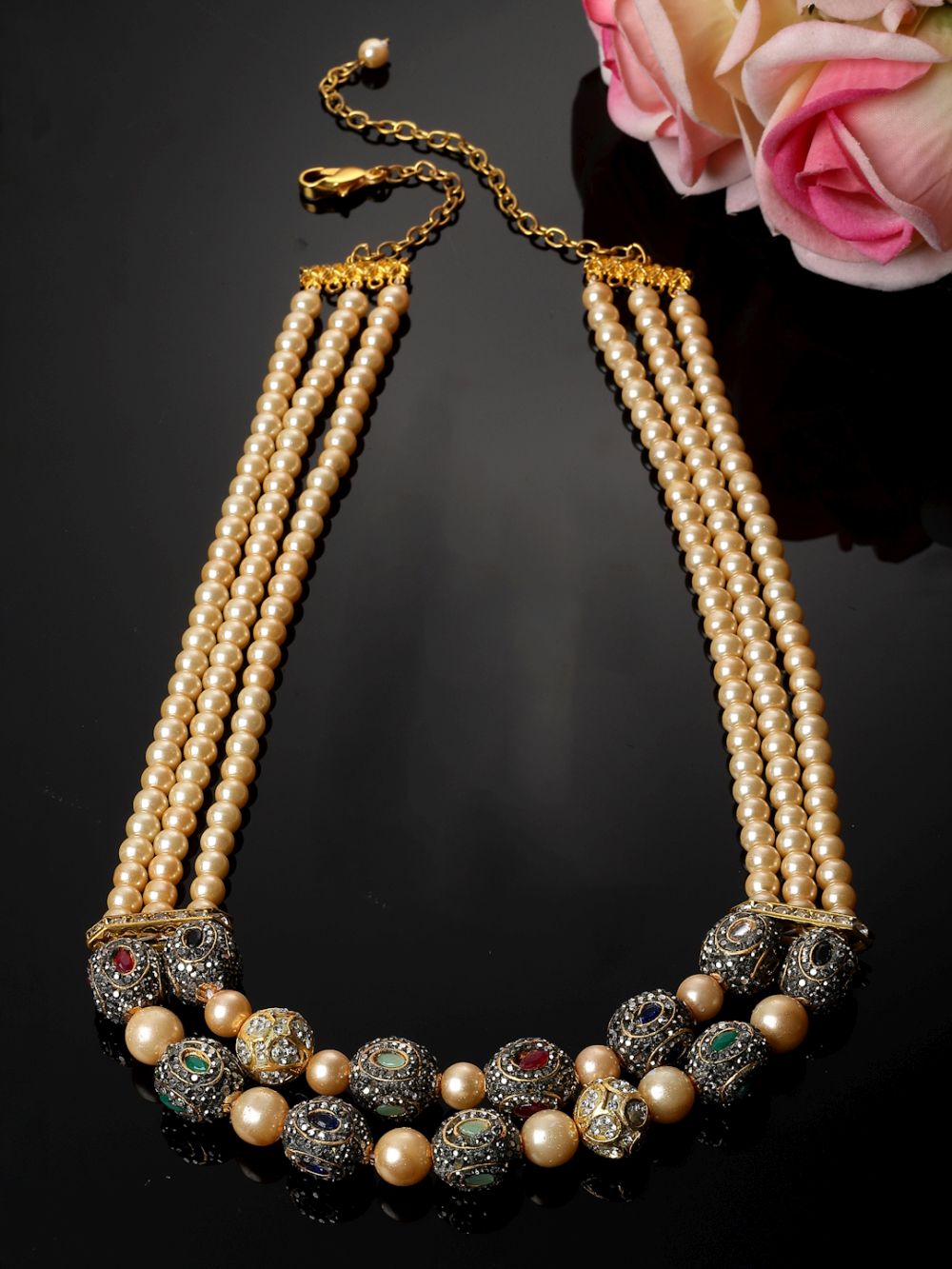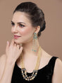 Green And Pink Layered Necklace With Kundan And American Diamonds