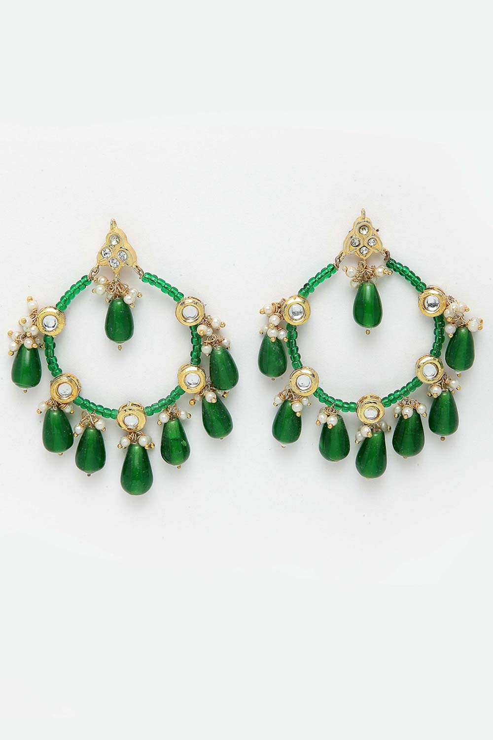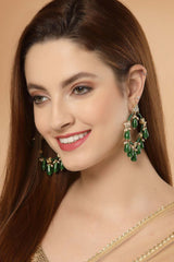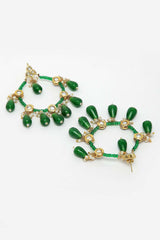 Green And White Gold-Plated Kundan And Pearls Chandbali Earring