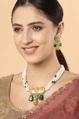 Green And White Gold-Plated Kundan And Pearls Dangler Earring