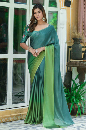 Green Chiffon Sequins Swarovski Embroidery Work Saree