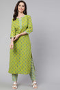 Green Cotton Ethnic Printed Straight Kurti With Trouser