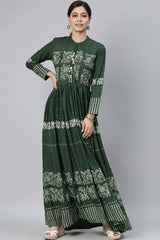 This Green Cotton Floral Print Round Neck Kurti is a timeless choice for any occasion. The intricate prints add a touch of sophistication to the ensemble, while the comfortable rayon fabric ensures effortless elegance and ease throughout the day.