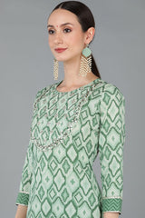 Green Cotton Gotta Patti Straight Suit Set