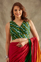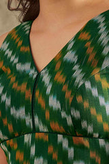 Green Cotton Printed Sleeveless Blouse