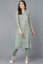 Green Cotton Printed Straight Kurti