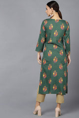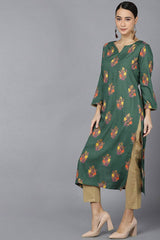 This Green Cotton Round Neck Kurti is a timeless choice for any occasion. The intricate prints add a touch of sophistication to the ensemble, while the comfortable rayon fabric ensures effortless elegance and ease throughout the day.